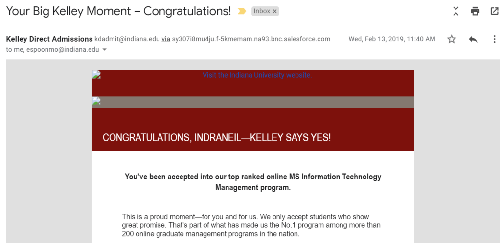 Feb 13, 2019 was perhaps one of the greatest moments of my life. Getting acceptance in the MS Information Technology Management program of one of the top Business Schools was a dream come true after all.