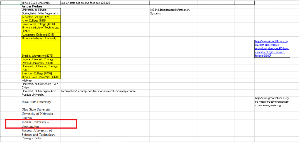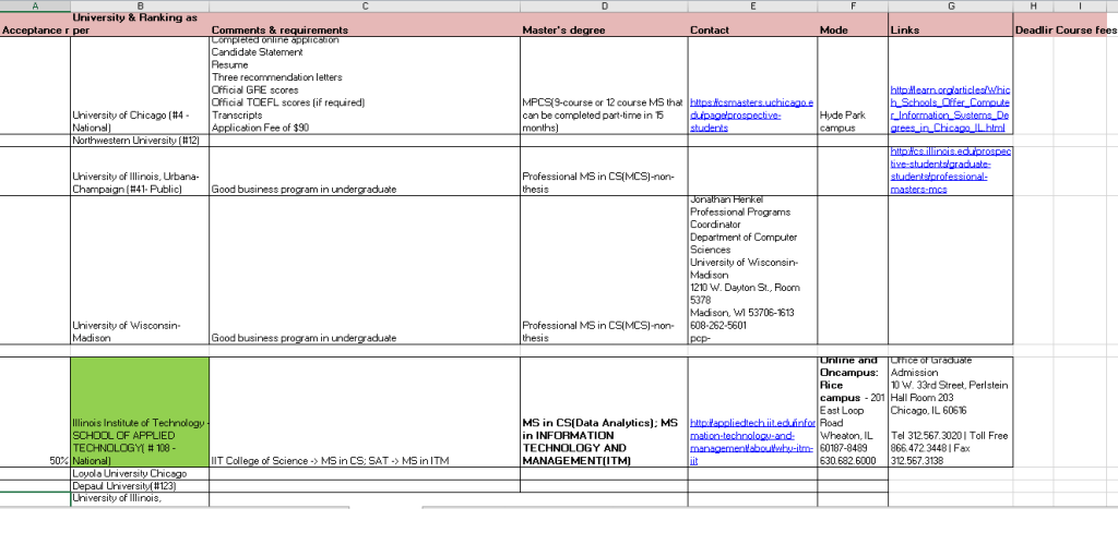 Here is a glimpse of the ambitious list of universities I had shortlisted that time.