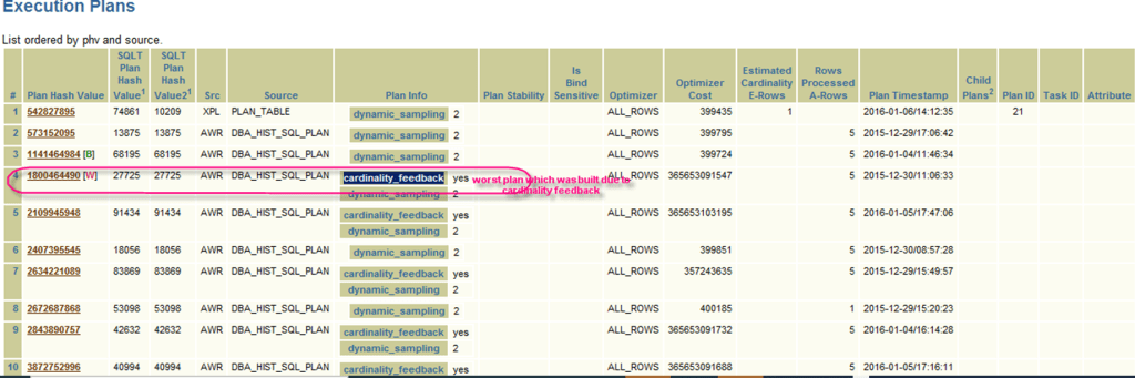 Plan 01: Execute SQL> alter system set “_optimizer_use_feedback”=false;